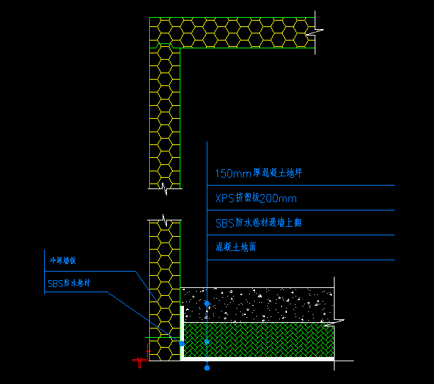 3、地面保溫采用:混凝土+SBS防水+XPSJI擠塑板200mm+150mm地坪