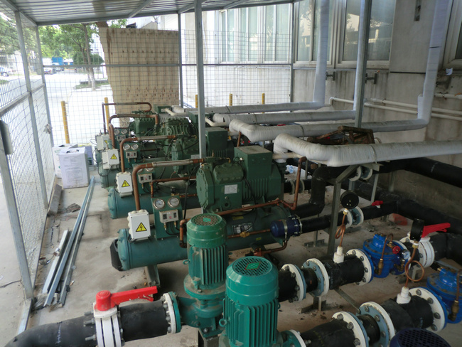(4)仔細(xì)傾聽壓縮機(jī),冷凍塔、水泵或冷凝器風(fēng)機(jī)運(yùn)轉(zhuǎn)聲音,發(fā)現(xiàn)異常及時處理,同時檢查壓縮機(jī)、排氣管及地腳的振動情況。