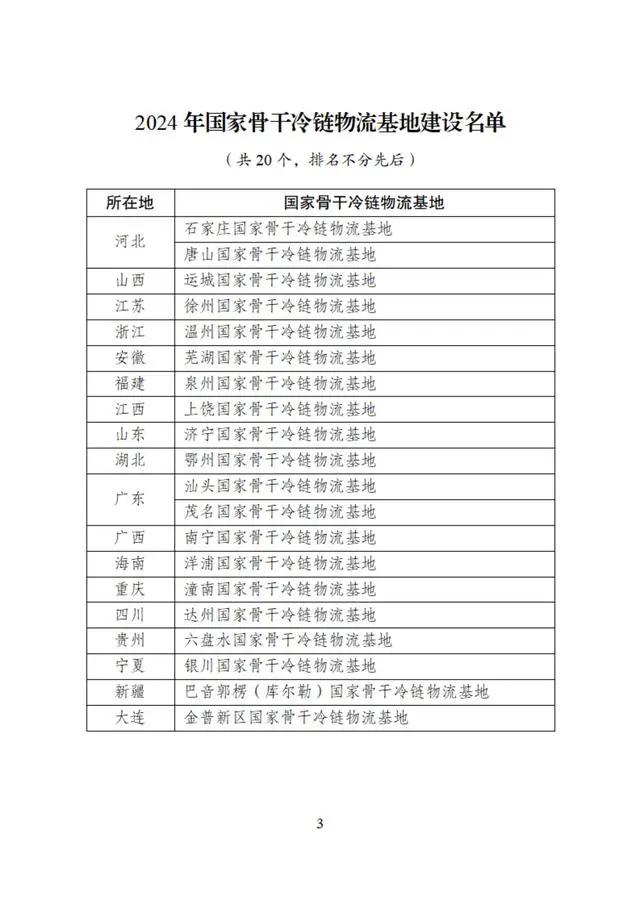 國(guó)家發(fā)展改革委發(fā)布2024年國(guó)家骨干冷鏈物流基地建設(shè)名單